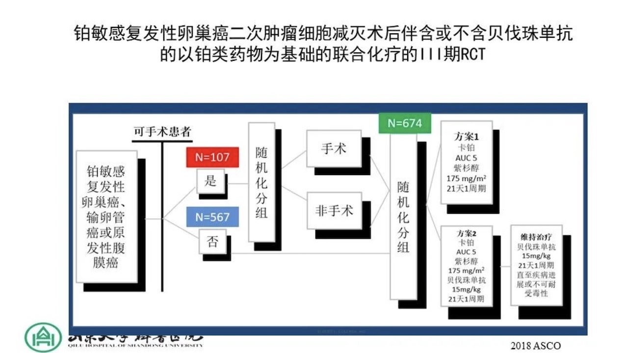 两项研究取得不同结果,有多种可能,包括入组患者的差异等等,但比较可以看到两者贝伐单抗的应用存在差异,铂敏感复发患者加用贝伐单会不会抵消手术的获益值得关注与研究。