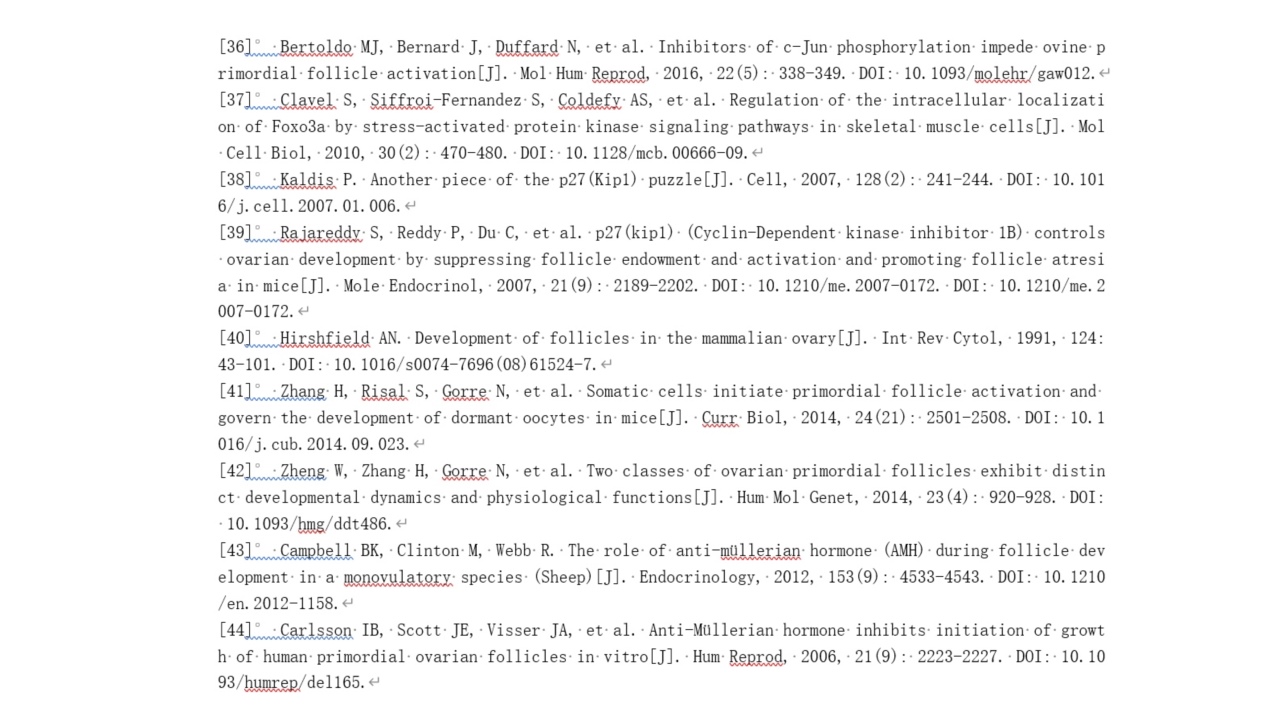 3.卵巢内环境及原始卵泡周围微环境——激活抑制因子:在卵泡发生调控因子中,AMH,SDF1起着抑制原始卵泡活化的作用,也是近年来的研究热点。