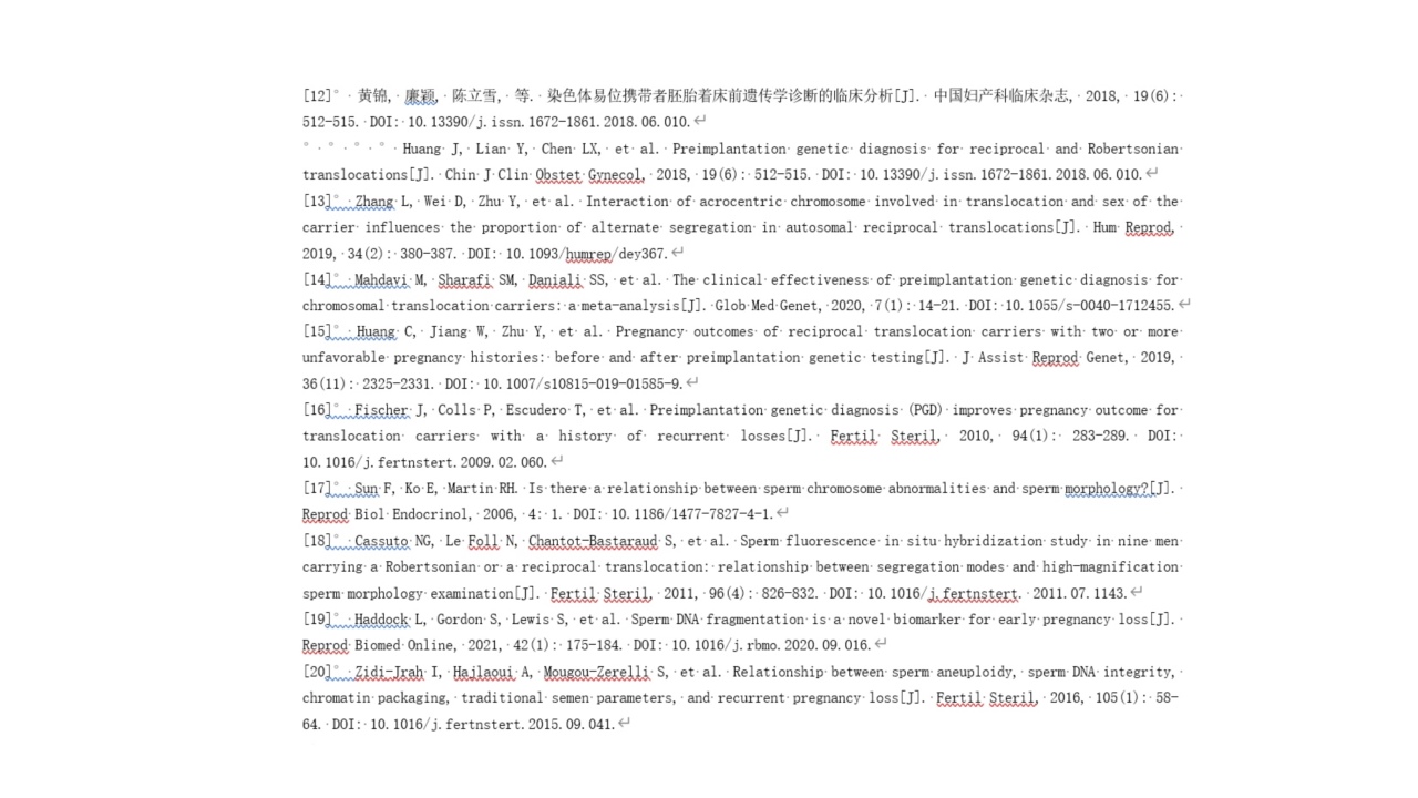 如果是因为胚胎发育时进行了“自然筛选”,那么女性携带者应该有更低的可移植胚胎数或更高的周期取消率,这与我们的研究中观察到的趋势一致(周期取消率为40.44%和36.94%),但是两组的差异均没有统计学意义(P=0.574)。我们考虑主要由于样本量较小,不足以反映出由于囊胚形成率不同导致两者的周期取消率的差异。本研究仅作为一个初步的探索,后续需要更大样本的研究来进一步证实平衡易位携带者性别对囊胚形成率的影响。