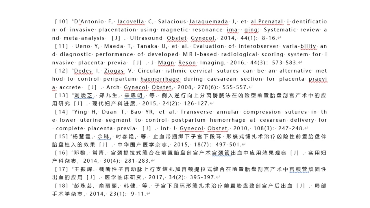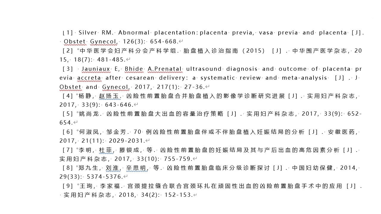 郑九生,辛思明,刘凌芝,等.凶险性前置胎盘伴宫颈植入的诊断与治疗[J/CD].中华产科急救电子杂志,2019,8(4):241-246.