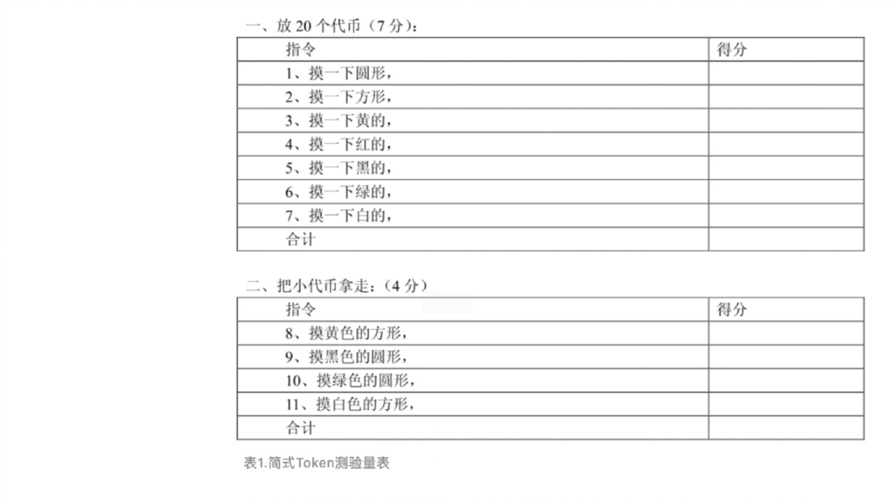 简式Token测验量表是由DeRenzi和Faglioni于1978年,在鹿特丹大脑与行为研究基金会的赞助下开发的一种短形式的Token测验,其灵敏度与长版本相当。测试项目由61项更改为36项,矩形更改为正方形,蓝色更改为黑色,大幅缩短了测试时间,被广泛用于临床实践。其中包含36个项目,由20个园形和正方形硬质厚片状塑料标志物组成。这是为那些正常交谈中失语障碍表现轻微或完全没有的患者设计,对于轻微的或潜在的失语症病例也具有诊断意义,该量表可检查患者的口语听理解和抽象能力,还可鉴别那些由于其他能力的低下而掩盖了伴随着的语言功能障碍的患者,或那些在处理符号过程中仅存在轻微的不易被觉察出问题的患者。但此测验对不同类型失语症无区别,对患有听记忆和纯言语听理解缺陷的,假阳性较高。