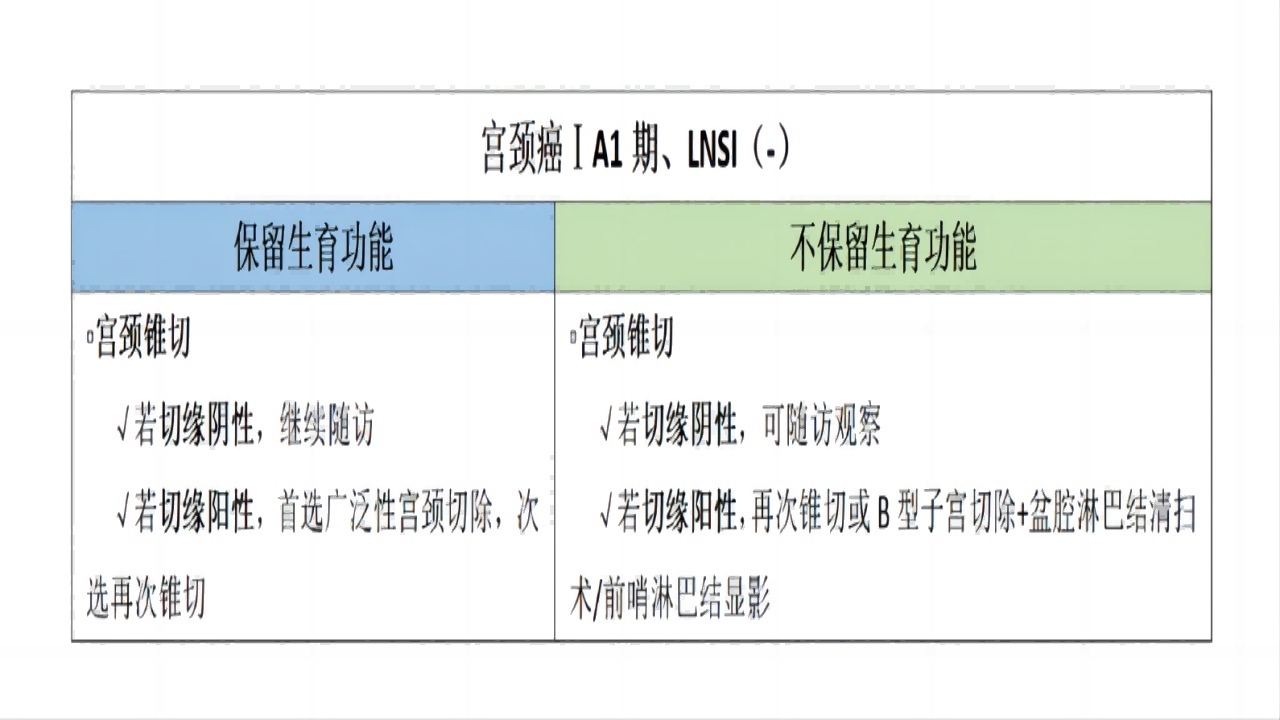 中国抗癌协会妇科肿瘤专业委员会在2021年制定的子宫颈癌诊断与治疗指南中,手术入路推荐开腹手术或经阴道手术,对于ⅠA1期无脉管侵犯患者可选腔镜微创手术。