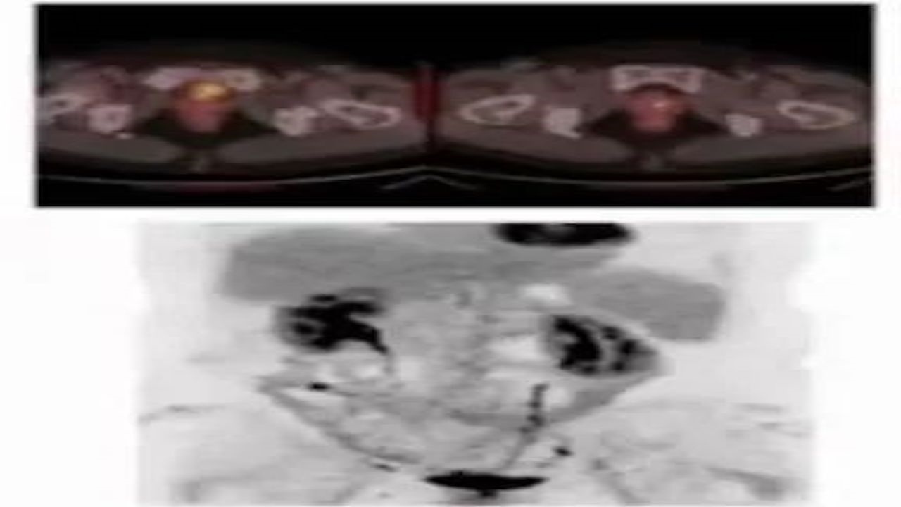 盆腔增强核磁检查:阴道残端可见新发数个稍长T2信号结节,大小约1.6x2.2x2.9cm,考虑阴道残端肿瘤复发,伴腹膜及双侧髂血管旁淋巴结多发转移。