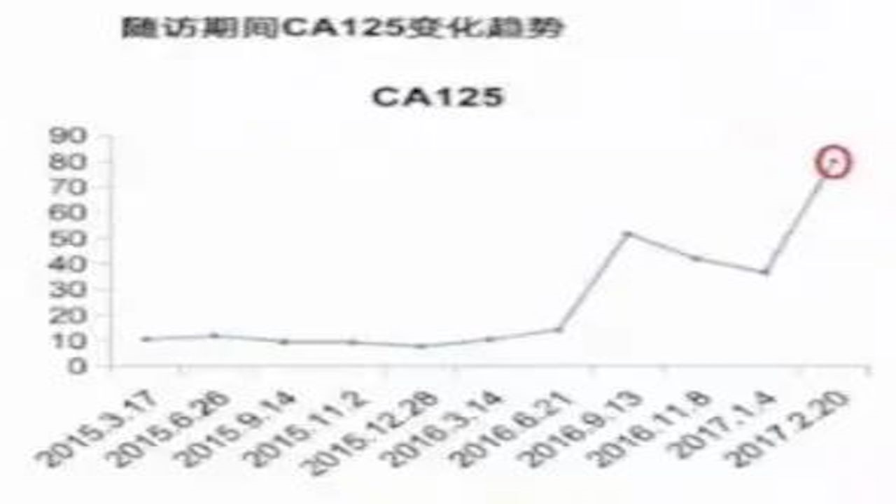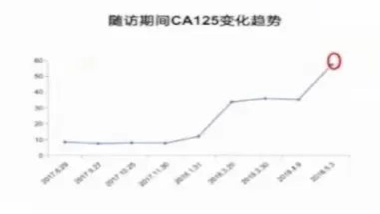 2017年8月至2018年5月规律随访,肿瘤标记物在2018年5月3号开始上升。