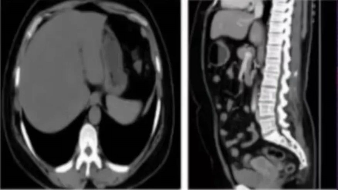2014-08-25回报CA-125:2668.8OUiml,CA-153:834.8U/ml。上腹部CT提示肝右叶占位。