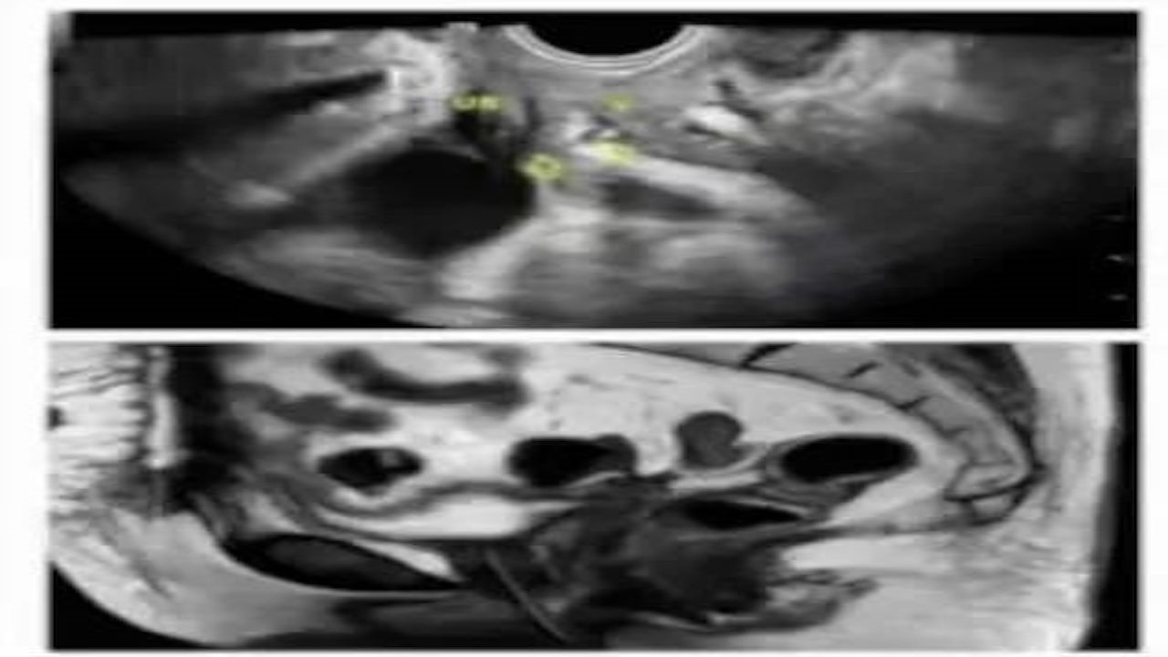 盆腔增强MRI:膀胱阴道瘘尿道周围小囊性病变,较前缩小,卵巢癌多次术后。