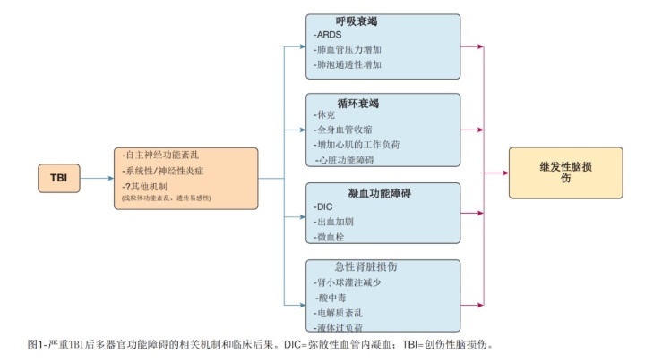 单个器官功能障碍和多器官功能障碍的负担增加一直与TBI后更差的临床和功能结果有关,超过了单纯的神经损伤的严重程度。因此,了解多器官功能障碍的基本机制,制定预防措施,研究治疗进展,可能都是减少继发性脑损伤和改善严重创伤性疾病患者预后的可行途径。在下一节中,我们将讨论一些已知的严重TBI后多器官功能障碍的病理生理机制。