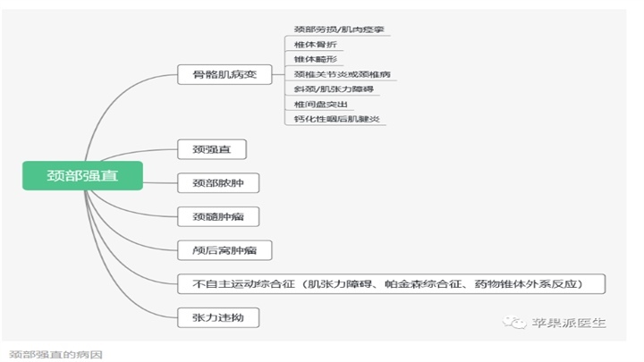 颈部强直:指的是颈部向任何方向运动有阻力。相反颈强直特指屈颈的阻力。