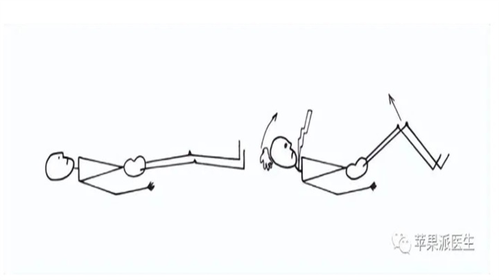 克氏征:患者平躺在床上,下肢屈髋和屈膝,然后伸直膝关节。另一侧重复该动作。