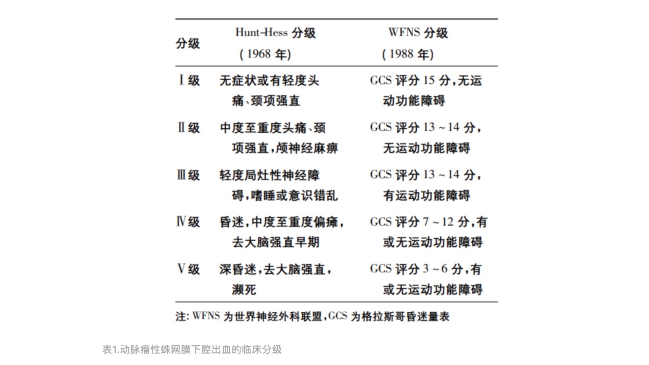 1、动脉瘤性蛛网膜下腔出血的临床分级