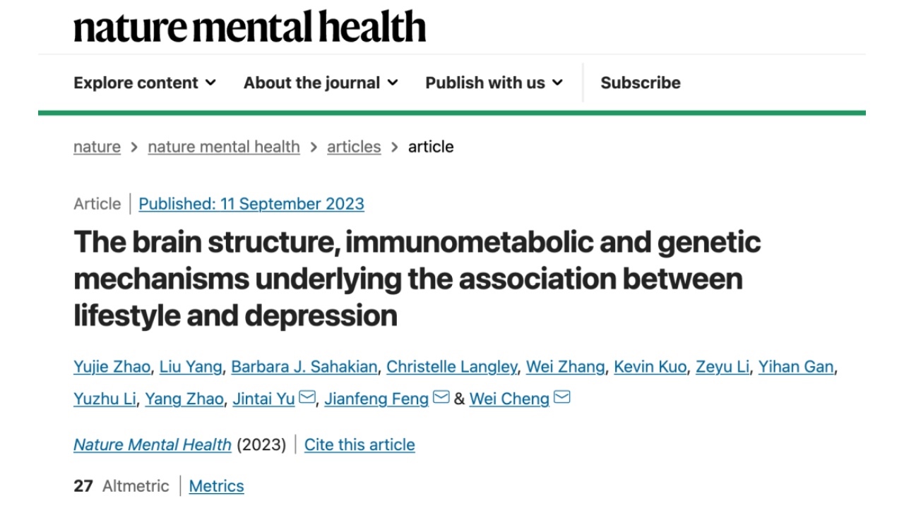 近日,一项发表在《自然心理健康》杂志上的研究由国际研究小组进行,其中包括剑桥大学和复旦大学的科学家。