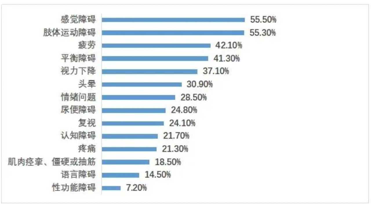 图1.《多发性硬化患者生存报告(2018)》症状报告