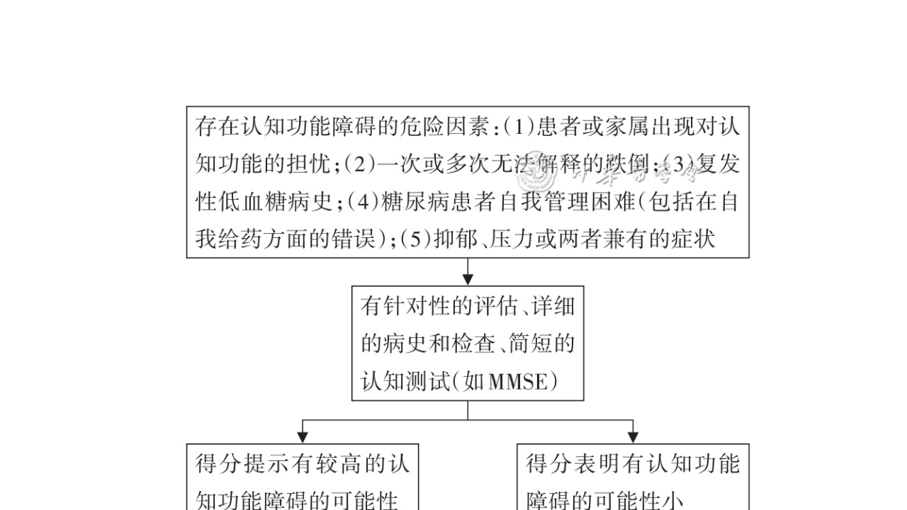 随着我国老龄人口增加,糖尿病的患病率和糖尿病患者发生认知功能障碍的风险显著升高,而存在认知功能障碍的糖尿病患者糖尿病自我管理能力下降、糖尿病护理依赖性增加,又加重了糖尿病进展,形成恶性循环。因此,一旦糖尿病患者出现认知功能下降的情况,应尽早进行诊断及干预。