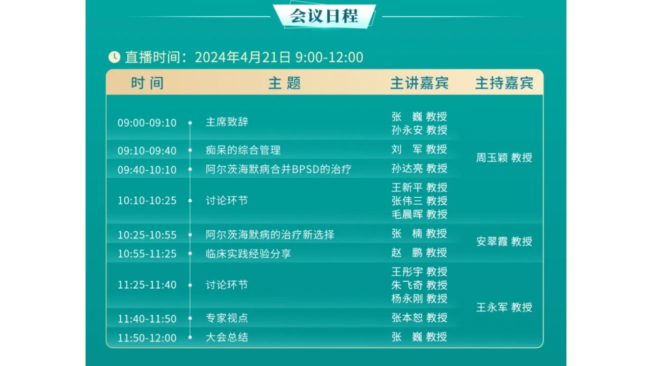 我们诚挚邀请大家前来参加2024年4月21日(本周日)09:00-12:00线上举办的高峰论坛。一起交流、探讨阿尔茨海默病诊治新方向,助力认知学科的发展。