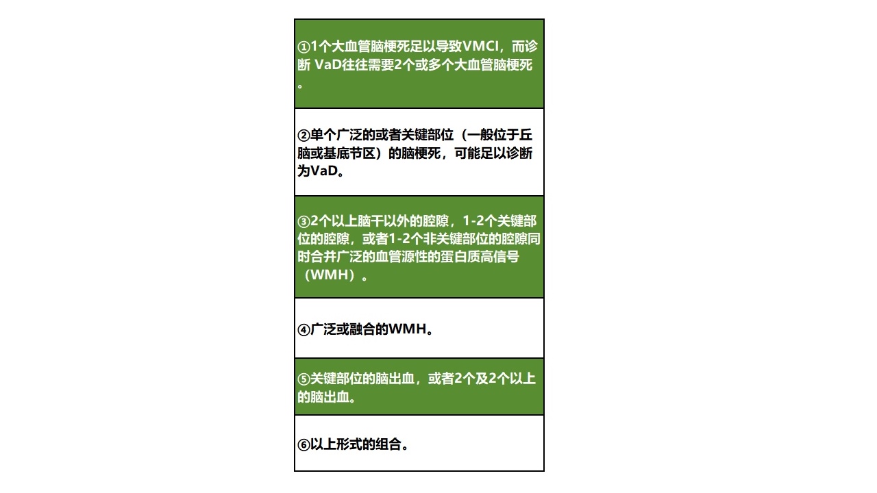 在VCI的诊断体系中,这些神经影像学发现必须结合临床症状,并且必须考虑其性质、严重程度和位置。