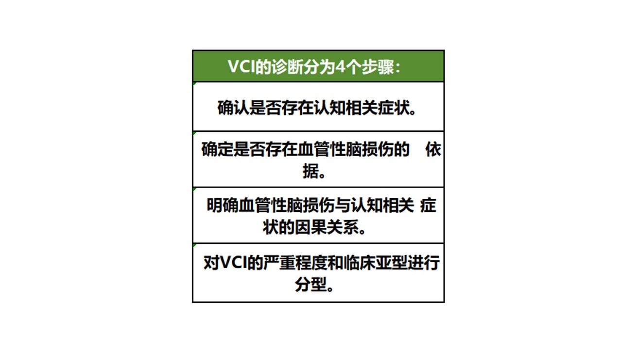 通过了解指南可以得知,VCI的诊断标准是诊疗过程的重要一环,其主要分为4个步骤(详细步骤请看表1)。