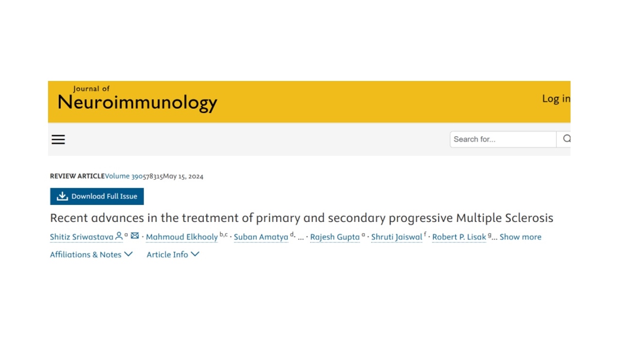 [3]SriwastavaS,ElkhoolyM,AmatyaS,ShresthaK,KagziY,BhatiaD,GuptaR,JaiswalS,LisakRP.RecentadvancesinthetreatmentofprimaryandsecondaryprogressiveMultipleSclerosis.JNeuroimmunol.2024May15;390:578315.doi:10.1016/j.jneuroim.2024.578315.Epub2024Feb17.PMID:38554666.