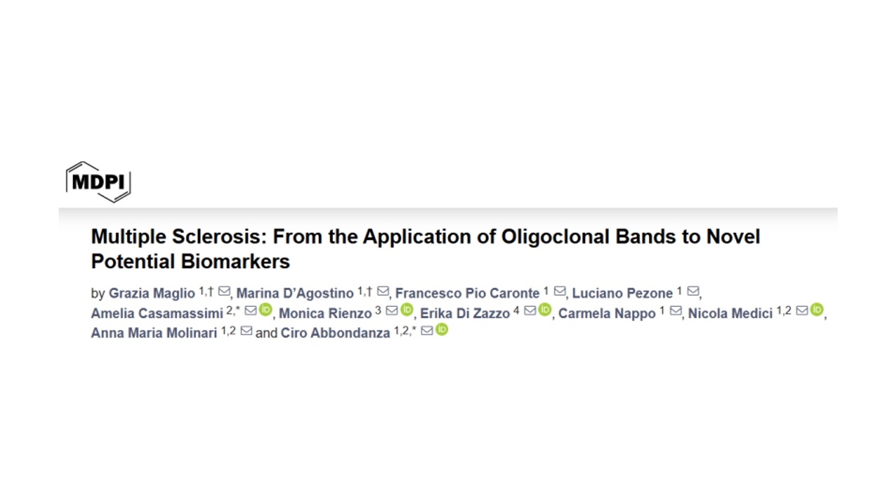 [2]MaglioG,D'AgostinoM,CaronteFP,PezoneL,CasamassimiA,RienzoM,DiZazzoE,NappoC,MediciN,MolinariAM,AbbondanzaC.MultipleSclerosis:FromtheApplicationofOligoclonalBandstoNovelPotentialBiomarkers.IntJMolSci.2024May15;25(10):5412.doi:10.3390/ijms25105412.PMID:38791450;PMCID:PMC11121866.