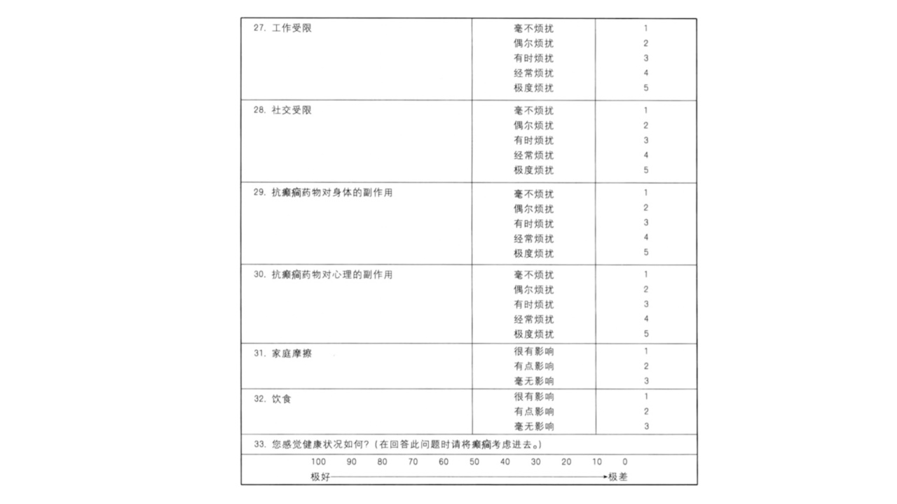 癫痫患者生活质量评定量表