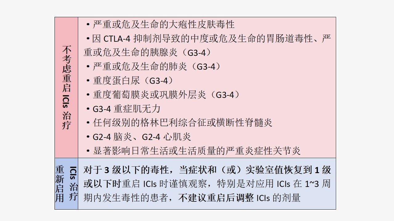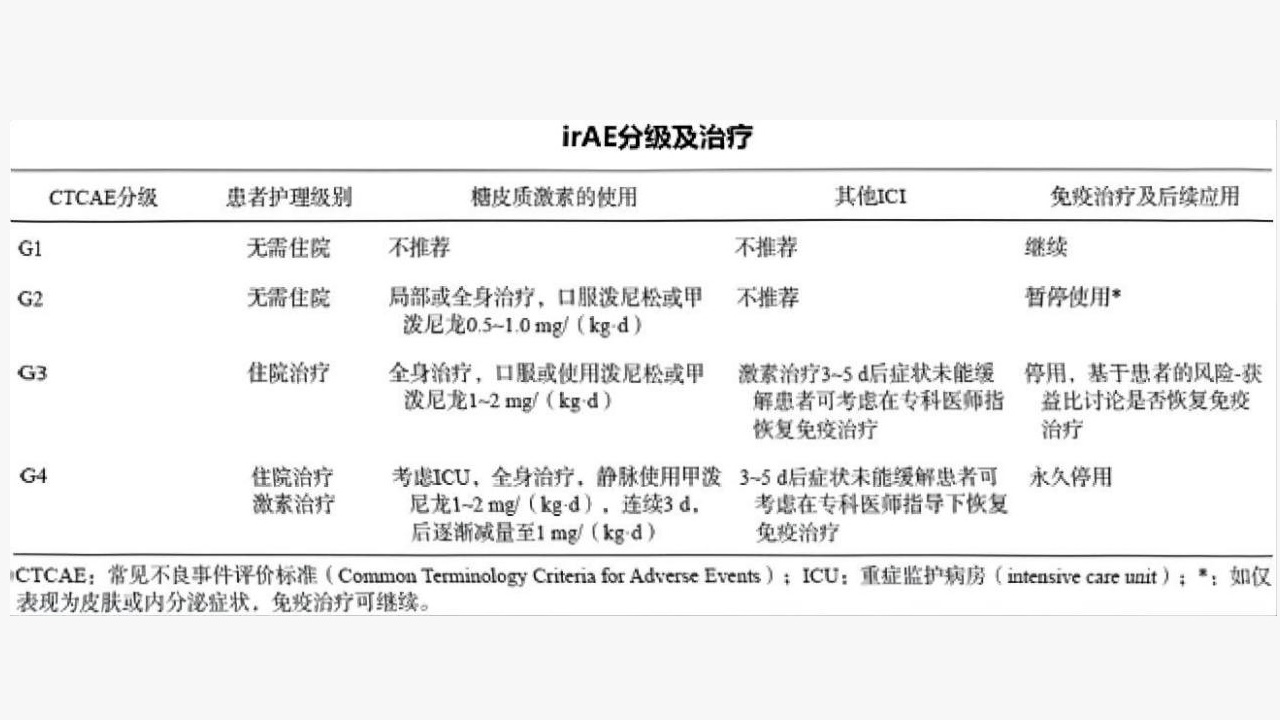 原则上,4级以上irAE毒性需要永久性停用ICI(激素替代控制的内分泌系统毒性除外)。