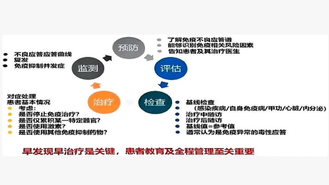 总之,做到ICI治疗安全性管理,需从预防、评估、检查、治疗、监测5大方面着手,同时加强患者教育。