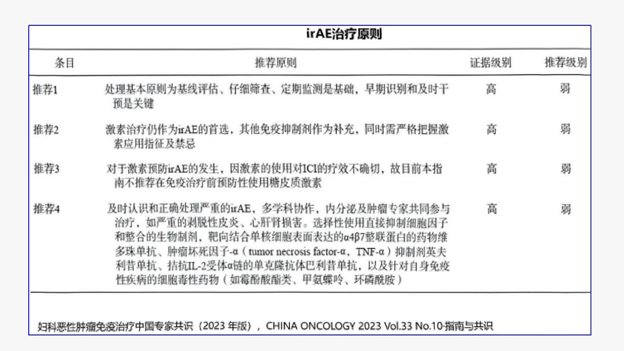 5、妇科肿瘤ICIs治疗irAE分级治疗原则