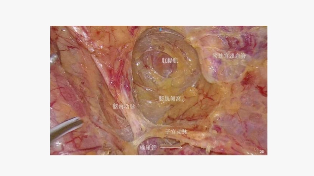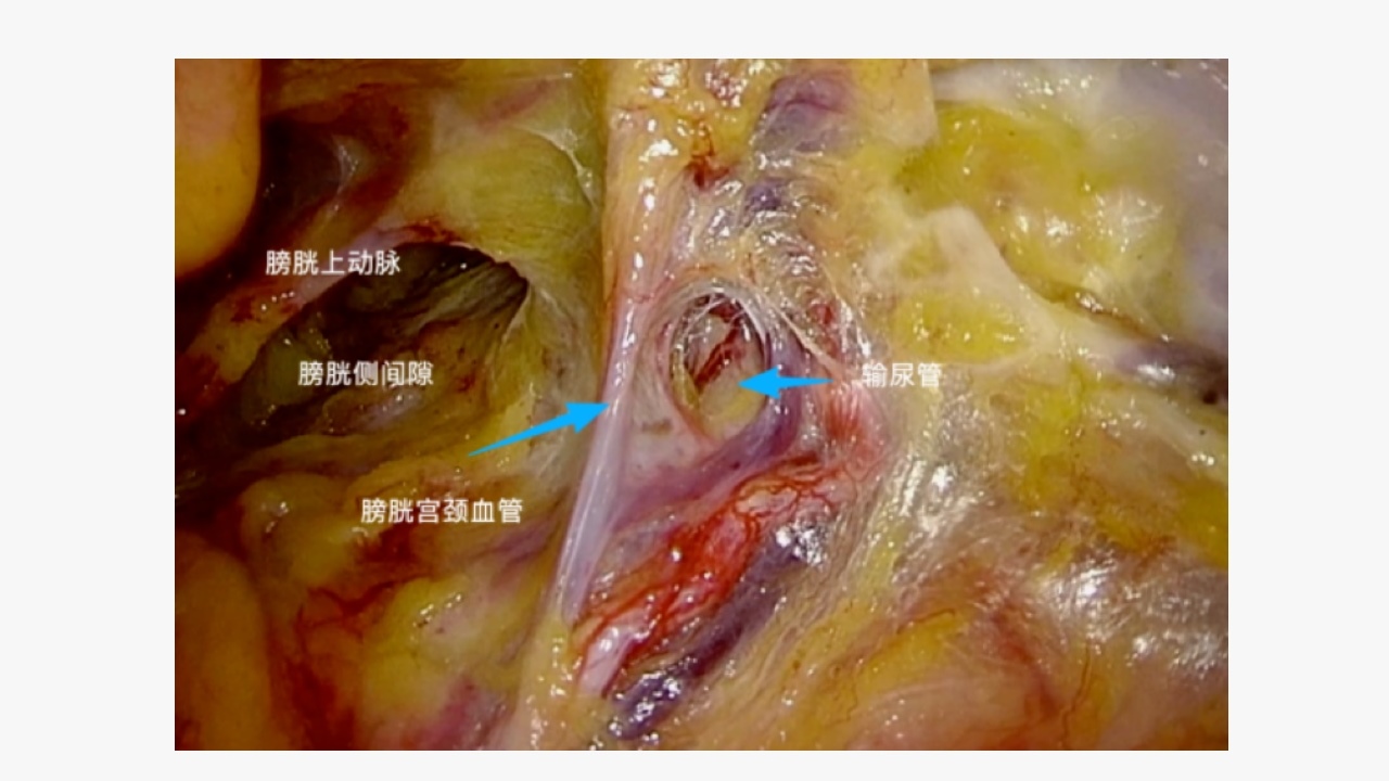 对于底部为盆隔上筋膜为界限,只要在正确的间隙内,锐性分透筋膜见到其下方的脂肪即可,因为在胚胎发育过程中,阴道上段来自副中肾管,下段来源于泌尿生殖窦,所以临床上向底部分离以见到该间隙内筋膜下方的脂肪为标记。膀胱上动脉这根血管需要重视,在分离膀胱侧间隙时将其向膀胱侧推开,避免将其连同主韧带一起离断,从而导致处理膀胱宫颈韧带时解剖不清,增加手术难度!