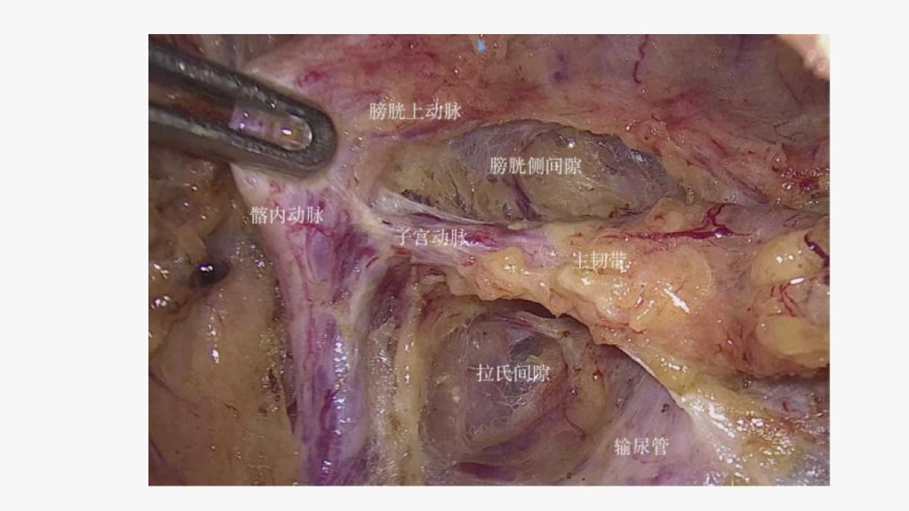 团队手术的顺序为先分离侧腹膜后间隙和膀胱宫颈阴道间隙、随后膀胱侧间隙、再拉氏间隙,通常不刻意单独去游离冈林间隙和直肠阴道间隙。对于侧腹膜后间隙和膀胱宫颈阴道间隙的分离相对简单,在此也不予以赘述。