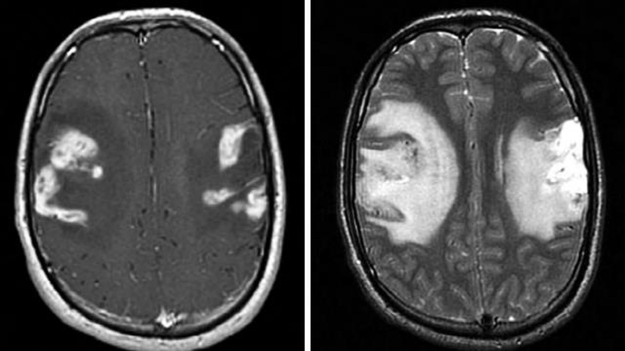 进行性多灶性白质脑病(PML):可出现多灶性神经功能障碍,包括运动无力,视觉改变和认知功能受损,常呈进展性、多灶性病程,典型影像学表现为对称性或非对称性多灶性白质脱髓鞘,病灶不符合血管分布区,且无占位效应也无增强,脑脊液中检出JC病毒DNA可确诊,或通过脑活检确诊,需完善脑脊液DNA、RNA,二代测序等检查。
