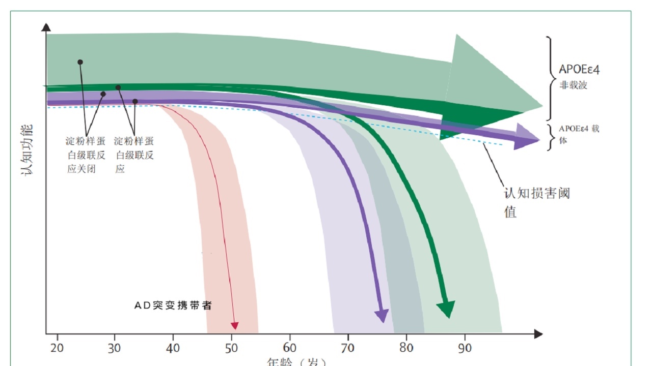 β-淀粉样蛋白积累的时间和速率的异质性,以及淀粉样蛋白级联反应下游认知障碍的发展,受到非APOE基因、非阿尔茨海默病病理、年龄、性别、生活方式因素、衰弱状态及环境暴露(如识字率、教育程度和早期认知参与度等随机因素的调节。随机因素可调节对β-淀粉样蛋白病理发展的抵抗力,或在存在β-淀粉样蛋白病理的情况下,对认知衰退的抵抗能力。