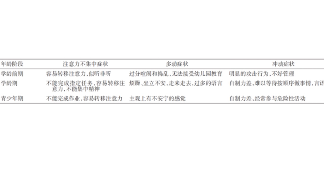 图1.不同年龄阶段注意缺陷多动障碍的症状线索